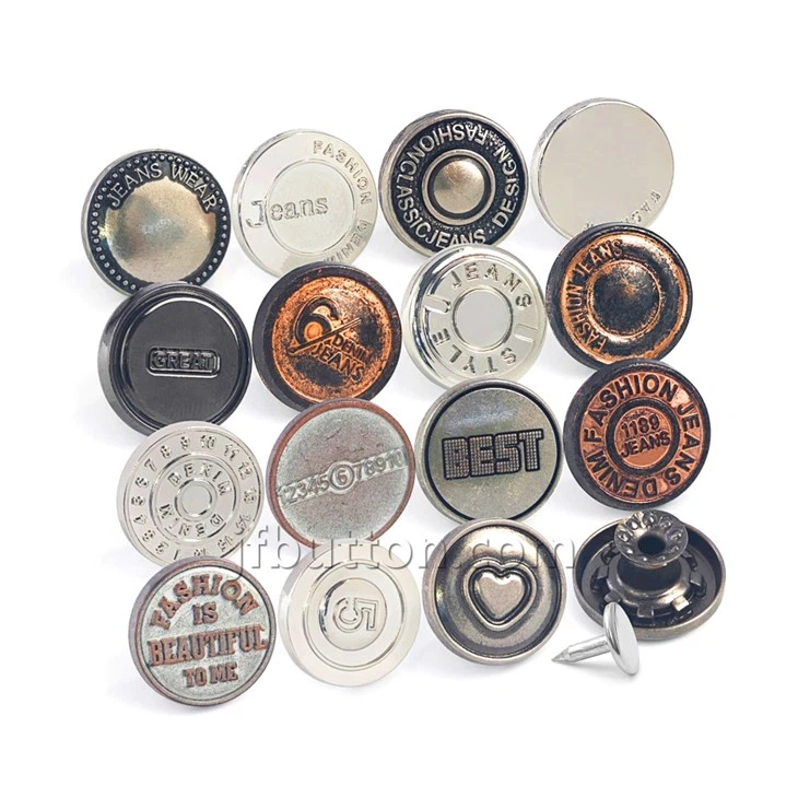 Hlavními materiály v tlačítkách džíny jsou měď, slitina zinku, železo, hliník atd.